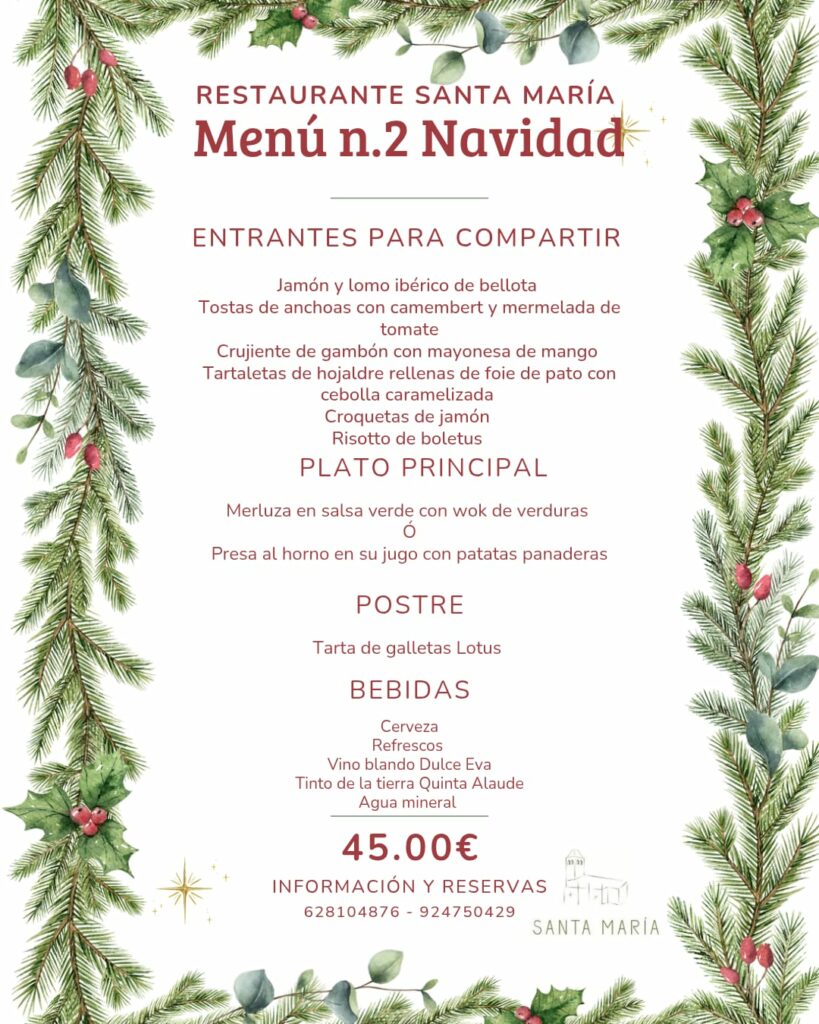 Menú de Navidad del Restaurante Santa María